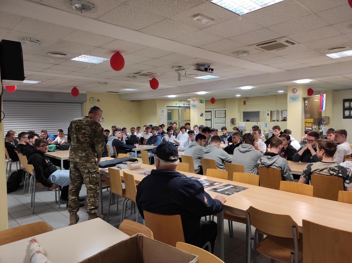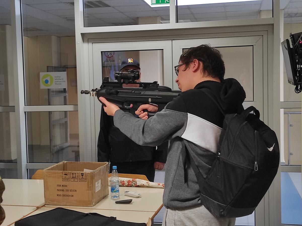 Na predavanju je bilo prisotnih 61 dijakov in ena dijakinja. Z zanimanjem so sledili predavanju, odgovarjali na nagradna vprašanja in se na koncu preizkusili v šolskem streljanju v tarčo s šolsko avtomatsko puško, ki je imela lasersko namerilno napravo.
