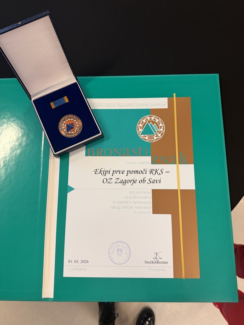 Na včerajšnji slovesnosti ob 1. marcu, dnevu Civilne zaščite, ki ga od leta 1992 obeležujemo v Sloveniji, je ekipa prve pomoči Rdečega križa – Območnega združenja Zagorje prejela bronasti znak Civilne zaščite.