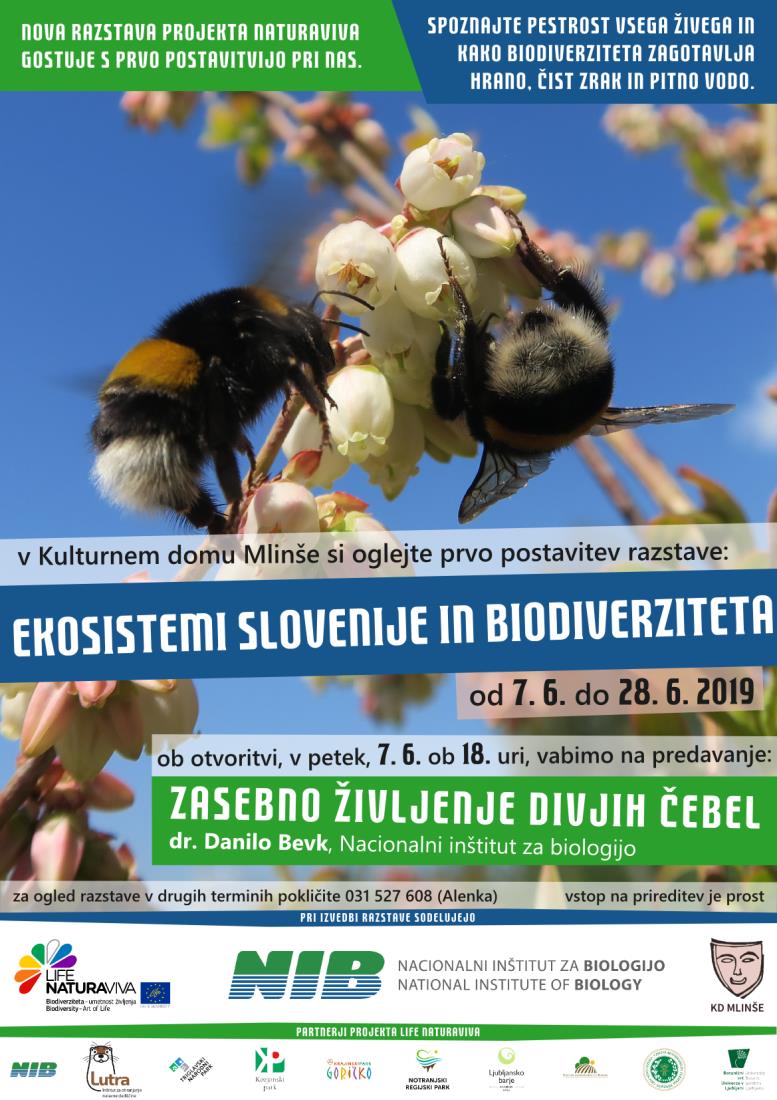 Nova razstava projekta LIFE NATURAVIVA s prvo postavitvijo gostuje na Mlinšah. Razstava predstavlja združbe organizmov osmih osnovnih ekosistemov, ki jih najdemo v Sloveniji: gozd, kulturno krajino, visokogorje, naselja, celinske vode, mokrišča, morje in podzemlje. Skozi to raznoliko okolje, ki se nahaja na stičišču štirih velikih geografskih regij: alpske, panonske, dinarske in sredozemske, spoznamo enega od ključnih razlogov, zakaj imamo v Sloveniji veliko biodiverziteto. In ker je razporejena na relativno majhni površini države, je to za Evropo nekaj posebnega.