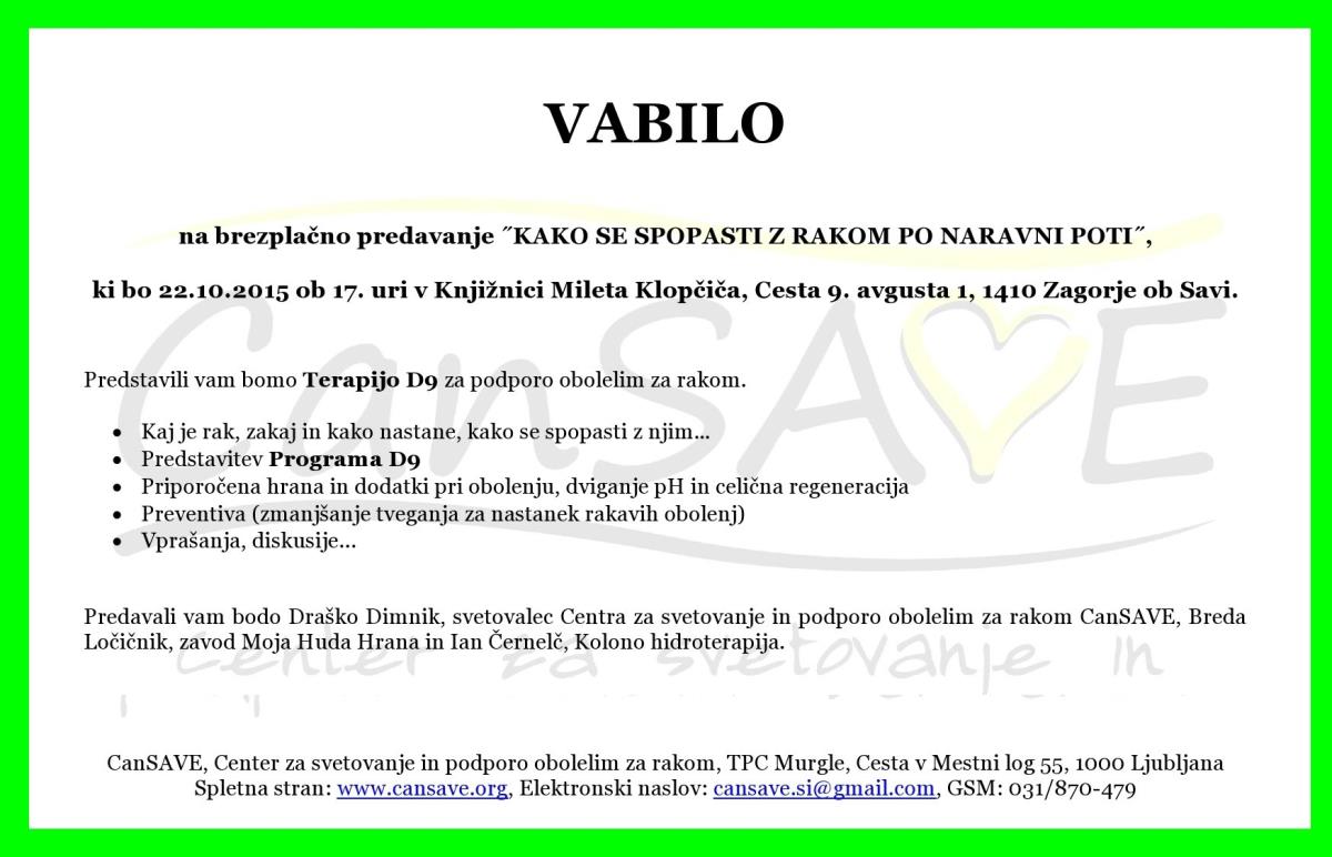 Vabilo na predavanje - Kako se spopasti z rakom po naravni poti